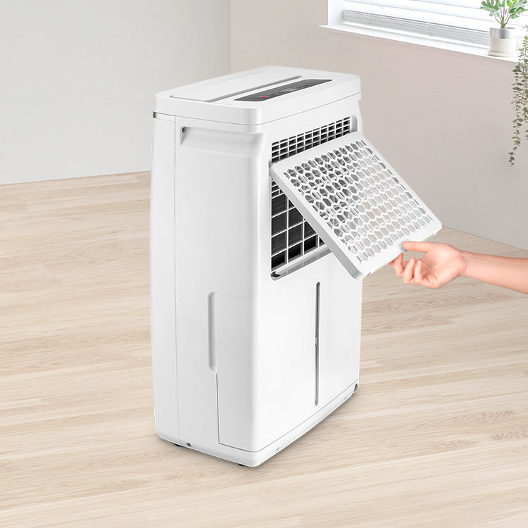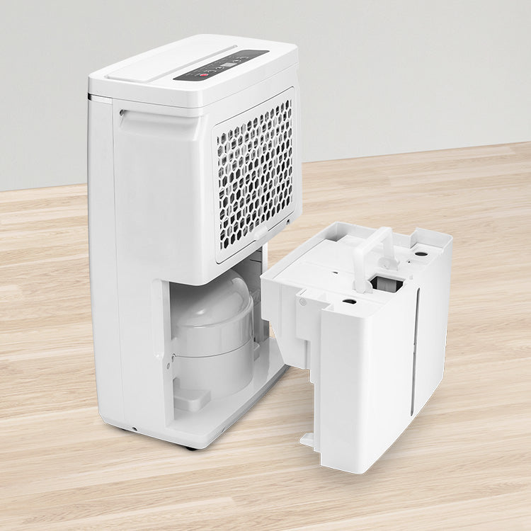 Amb una capacitat de dipòsit de 2 litres, aquest deshumidificador compta amb una alarma de dipòsit ple i un sistema dʻapagat automàtic per evitar desbordaments.