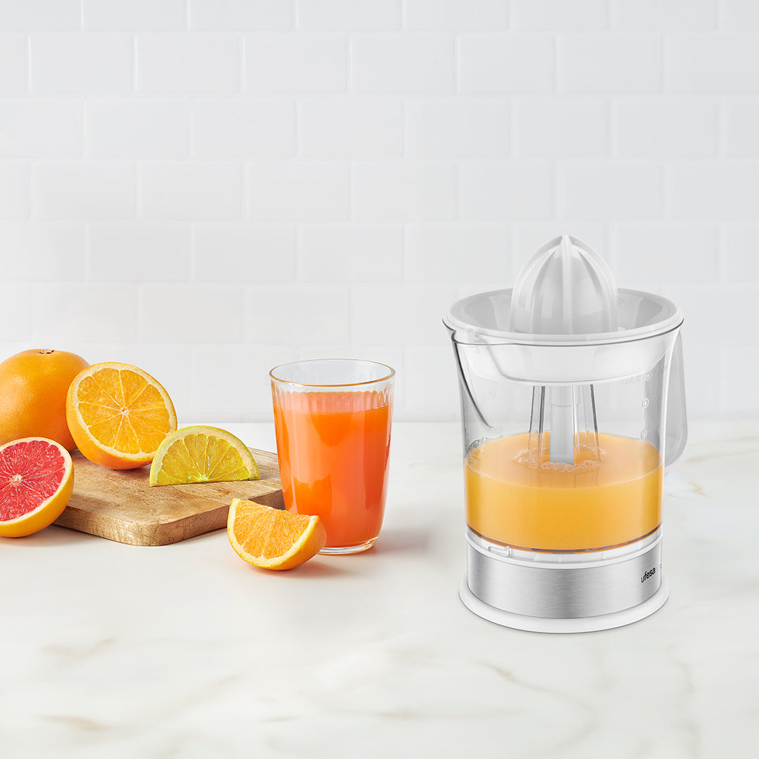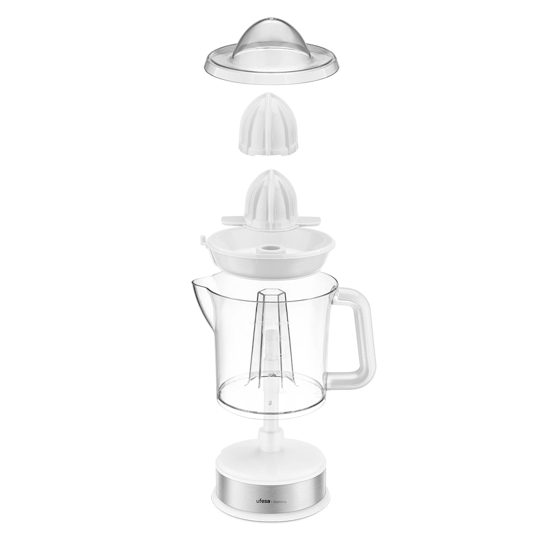 La seva gerra i tapa en materials ABS, AS i PP aporten robustesa i durabilitat , i la safata de l'espremedora facilita la preparació i neteja. Gràcies al sistema d'encesa automàtica en pressionar la fruita sobre el con i les seves peces desmuntables , esprémer i netejar es converteix en una tasca ràpida i còmoda.