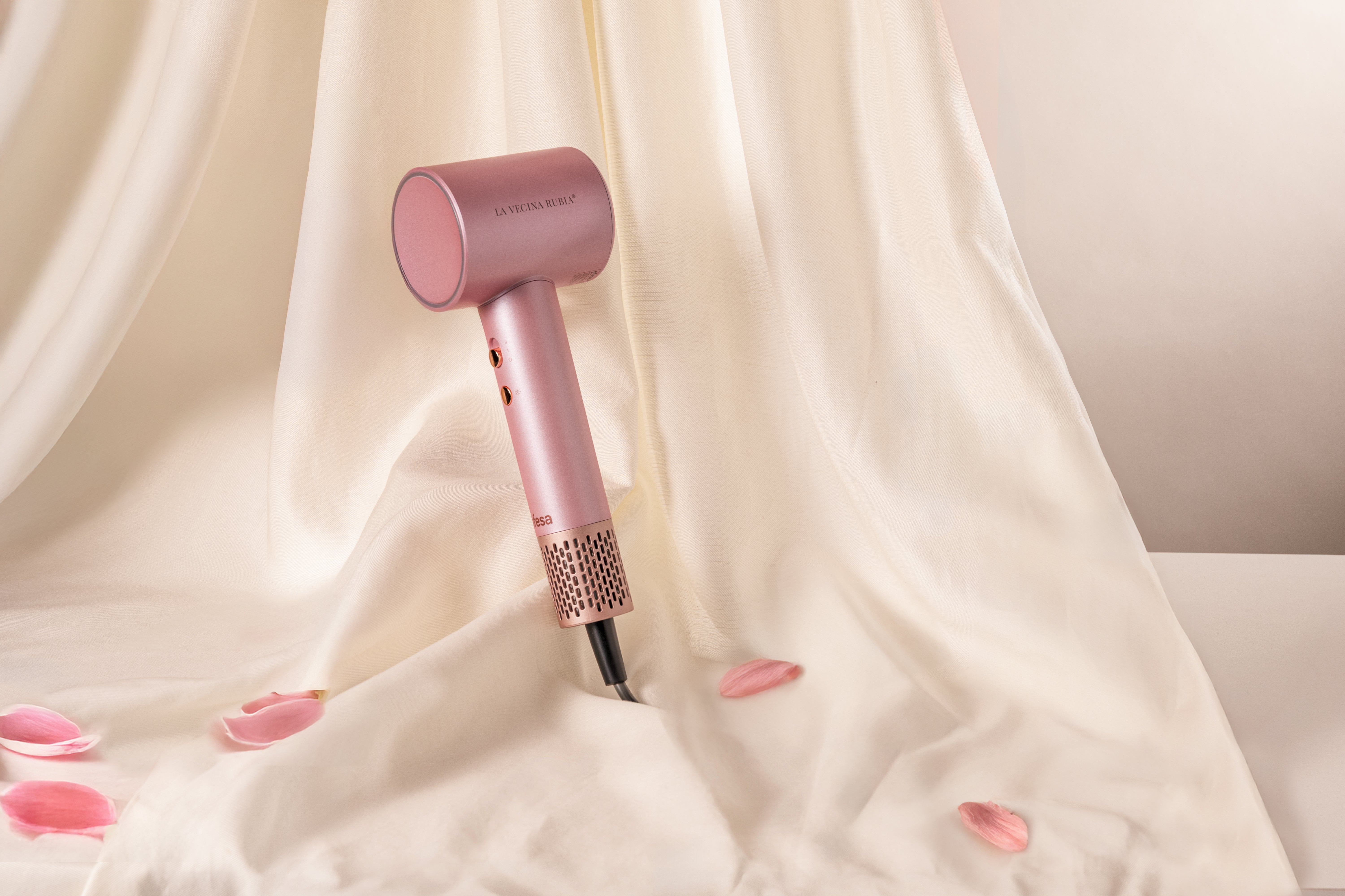 El secador La Vecina Rubia no solo seca: cuida tu pelo. Su motor digital de 110.000 rpm reduce el tiempo de secado al mínimo. La tecnología Dual Heat Protect alterna aire caliente y frío para evitar daños por calor, y el sistema Ion-Plasma Care equilibra el cuero cabelludo, ideal para melenas con tendencia grasa o encrespadas.