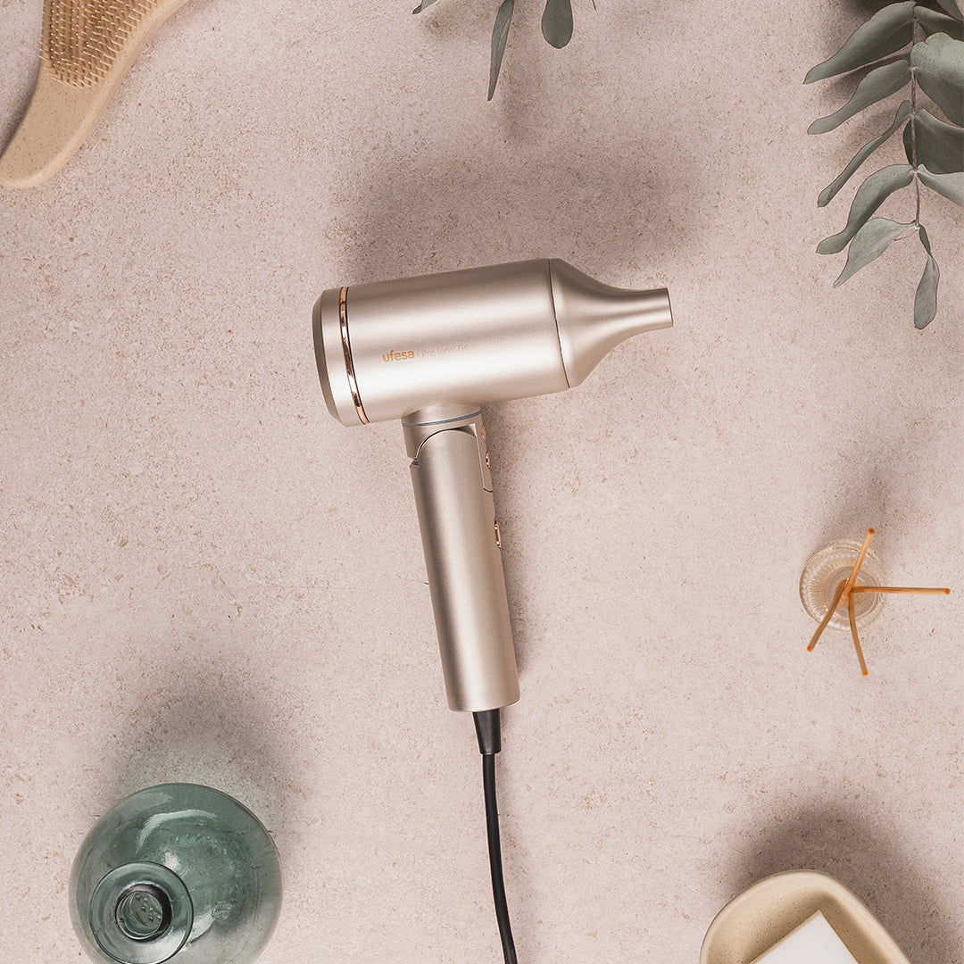 El Pro Ionic Go dispone de 3 velocidades y 3 niveles de temperatura, además de la función de golpe de aire frío para fijar el peinado. Incluye una boquilla magnética de precisión, que garantiza un acople firme y cómodo, y gracias a su tecnología Ultra-Silence, el motor reduce notablemente la resonancia, dejando solo el sonido natural del flujo de aire.