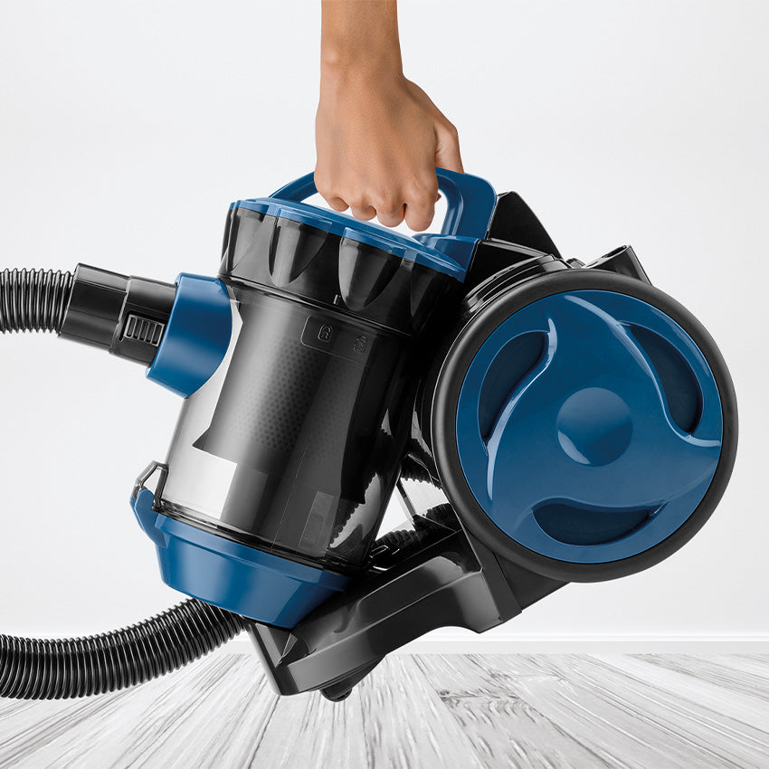 La aspiradora Zeri dispone de control de velocidad, tubo metálico resistente, cepillo 2 en 1 para adaptarse a diferentes superficies y un práctico recoge cable automático. Su asa de transporte y cable de 3,8 metros facilitan el manejo y el desplazamiento durante la limpieza.